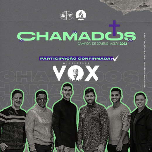 Faça sua inscriçãoO Chamado de Deus é um convite ao arrependimento dos nossos pecados! É também um convite para servir e compartilhar o amor de Deus! Mas a cima de tudo é a esperança de um novo céu e uma nova terra!